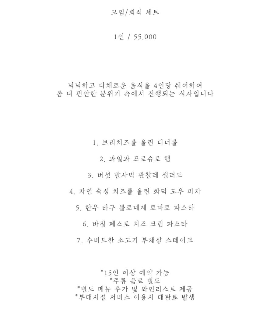 4인이 함께 나누는 풍성한 쉐어 코스입니다
